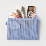 メッシュ仕様のポリエステル素材フラットタイプ、小さめサイズのポーチです。全面しっかりとしたメッシュ仕様で、中身を確認が確認しやすいポーチです。 ※フルカラー印刷のみ対応可