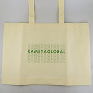 不織布素材の折り込み底マチタイプ、ビッグサイズのトートバッグです。フラットな感じで底にマチがついている、A3サイズも入る大容量バッグ。展示会等でたくさんの資料を入れて持ち歩いてもらう際にも活用できます。