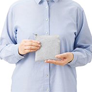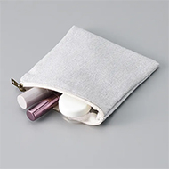 シャンブレー素材のマチ無しフラットタイプ、ミニサイズのポーチです。かばんに収納しやすいフラットな形状で、再生素材のシャンブレーは優しい風合いとカラーも特徴的です。