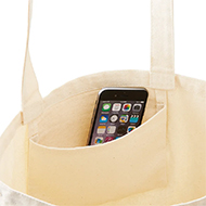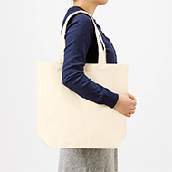 厚手のオーガニックコットン素材の舟形底マチタイプ、大きめサイズのトートバッグです。横型で容量もあり、内ポケット付きです。