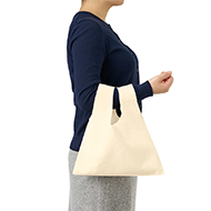 薄手のコットン素材・5オンスのマチなしフラットタイプ、小さめサイズのマルシェバッグです。A5が入るサイズ感でちょっとしたお出かけやお買い物におしゃれでぴったり、カジュアルに使えるマルシェバッグです。