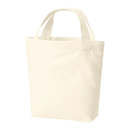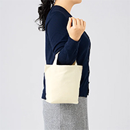 薄手のコットン素材・5オンスの舟形底マチタイプ、小さいサイズのトートバッグです。300mlペットボトルが隠れるサイズ感で、ちょっとしたお出かけに使いやすいバッグです。