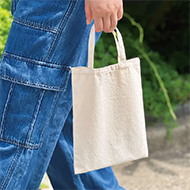 厚手のコットン素材・8オンスのマチ無しフラットタイプ、小さいサイズのトートバッグです。小物の配布用などに適したバッグです。