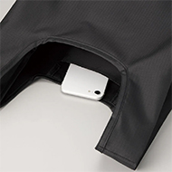 リップストップ生地の折り込み横マチタイプ、大きめサイズのエコバッグです。アウトドア用品等でも使用されるタフで機能的な生地が特徴的で、小さくたたんで内ポケットにコンパクトに収納できます。