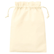 薄手のコットン素材、大きめサイズの巾着です。シンプルなフォルムの口元に付いたフリルデザインが特徴的で、ヒモ部分にも巾着生地を使用したおしゃれな印象の巾着です。