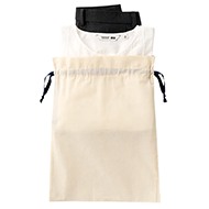 薄手のコットン素材、大きめサイズの巾着です。ナチュラル生地の巾着に7色のリボンカラー展開があり、ブランドイメージに合わせたノベルティはもちろん、パッケージやラッピング用としても適した巾着です。