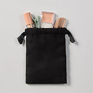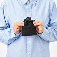スウェード風のポリエステル素材、ミニサイズの巾着です。高級感が感じられる生地が特徴的で、ギフトパッケージとしてもご利用いただけるアイテムです。
