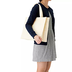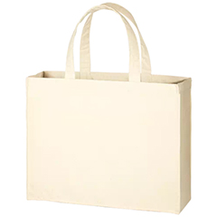 厚手のコットン素材・12オンスの箱型スクエアタイプ、大きめサイズのヨコ型トートバッグです。A3サイズが入るサイズ感で、オープンキャンパスなどにも活用いただけます。