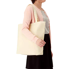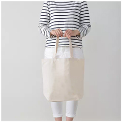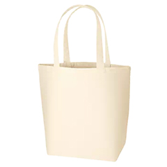 厚手のコットン素材・12オンスの舟形底マチタイプ、少し大きめサイズのトートバッグです。横型で容量もあるので、荷物が多い時の外出などでもご活用いただけます。