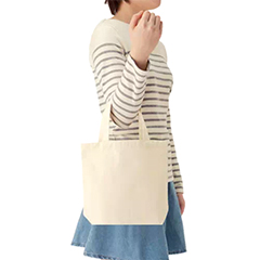 厚手のコットン素材・10オンスの舟形底マチタイプ、少し小さめサイズのトートバッグです。A4よりも少し小さいサイズ感で、小さめの雑誌や書籍の持ち運びなどにも適しています。