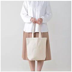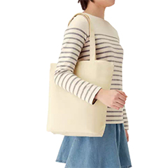 厚手のコットン素材・10オンスの舟形底マチタイプ、スタンダードサイズのトートバッグです。軽くて丈夫なキャンバス素材で汎用性が高く、あらゆるシーンでご利用いただけるオーソドックスな仕様のバッグです。