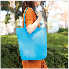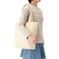 厚手のコットン素材・10オンスの舟形底マチタイプ、少し大きめサイズのトートバッグです。横型で容量もあるので、荷物が多い時の外出などでもご活用いただけます。