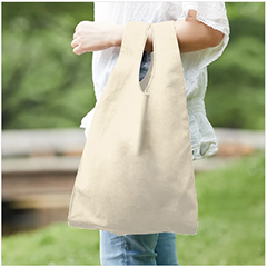 薄手のコットン素材・5オンスの折り込み横マチタイプ、A4がゆとりをもって入るサイズ感のマルシェバッグです。ちょっとしたお買い物や日常使いにおしゃれでぴったり、カジュアルに使えるマルシェバッグMサイズです。