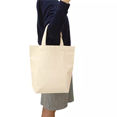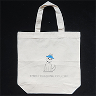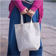 薄手のコットン素材・5オンスの舟形底マチタイプ、小さめサイズのトートバッグです。軽くて小さく折りたたむことも可能で、小さめのサブバッグとしても活用できます。