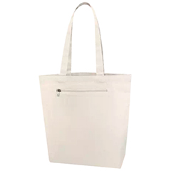 厚手のコットン素材・10オンスの舟形底マチタイプ、スタンダードサイズのトートバッグです。小物の出し入れに便利な外ポケット付き、ファスナー開閉できるので安心してご利用いただけます。