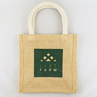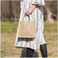 ジュート素材の箱型スクエアタイプ、小さいサイズのトートバッグです。天然素材でナチュラルな印象のバッグで、コスメや食料品等のオーガニックなプロモーションにも適しています。 ※細かいデザインの印刷が出にくいので、データ作成時にご注意ください。