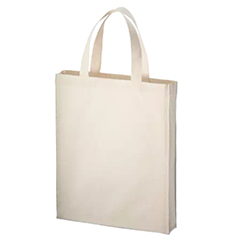 薄手のコットン素材・5オンスの箱型スクエアタイプ、A4がぴったり入るサイズのトートバッグです。マチがあるので厚みのあるカタログやパンフレットを入れることもでき、資料配布用等に適しています。