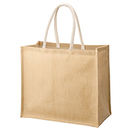 ジュート素材の箱型スクエアタイプ、ビッグサイズのトートバッグです。天然素材でナチュラルな印象のバッグで、コスメや食料品等のオーガニックなプロモーションにも適しています。 ※細かいデザインの印刷が出にくいので、データ作成時にご注意ください。
