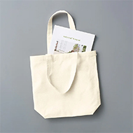 薄手のコットン素材・5オンスの舟形底マチタイプ、やや小さめサイズのトートバッグです。A4サイズが入る容量で、軽くて小さく折りたたむことも可能。展示会のサンプル配布等、配りもの用にも適しています。