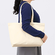 厚手のコットン素材・10オンスの舟形底マチタイプ、スタンダードサイズ横長のトートバッグです。ワイドシルエットで間口が広く底が浅いので、中のものを取り出しやすいバッグです。