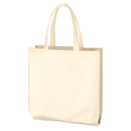 厚手のコットン素材・8オンスの折り込み横マチタイプ、大きめサイズのトートバッグです。A4サイズがゆとりをもって入るサイズ感で、横マチ付なので普段使いにも活用できます。