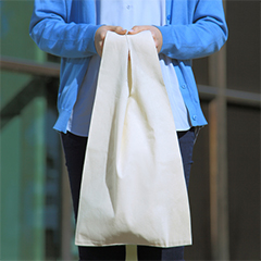 薄手のコットン素材・4.7オンスの折り込み横マチタイプ、スタンダードサイズのマルシェバッグです。ちょっとしたお買い物に適した、レジ袋型のバッグです。