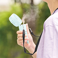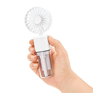 持ち歩きできるポータブルファン、充電式タイプです。風量は4段階調節が可能、ミスト機能付きなので細かいミストの気化熱で気持ちよくクールダウンすることができます。