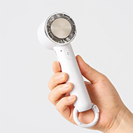 持ち歩きできるハンディファン、充電式タイプです。底面にカラビナ付きで、卓上でスタンドファンとしても使用ができます。風量は3段階調節が可能、ファン中央に付いているペルチェ素子を採用した冷却プレートを体にあてることで効率的に体を冷やすことができます。 ※名入れ1色印刷のみ可