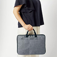 持ち手部分を出し入れすることができるPCバッグです。ファスナーを開けばそのままPCを使うことができ、ノートやペンなどを収納できる外ポケット付きのPCバッグです。
