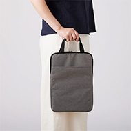 パソコンをタテに収納できるPCバッグです。ノートやペンなどを収納できる外ポケット付きで、バッグインバッグとしても活用できるPCバッグです。対応サイズの目安は13.3インチPC程度です。